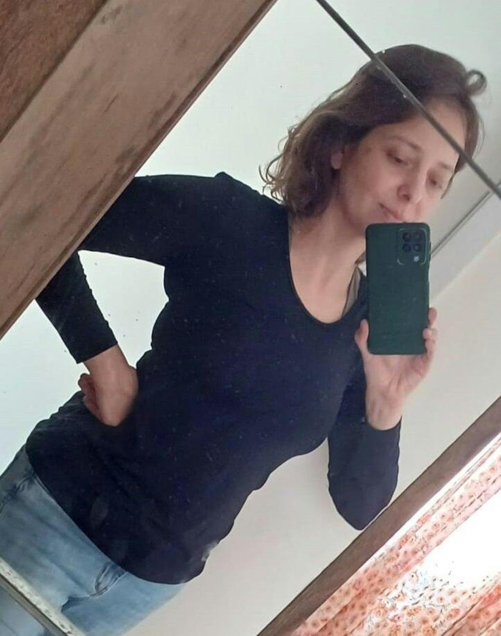 A modelo veste P, tem altura de 1,73 cm, busto de 85 cm, cintura de 65 cm e quadril de 96 cm.
