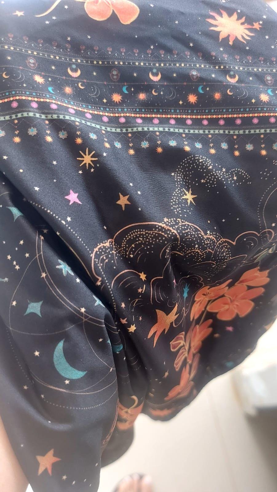 A modelo veste P, tem 167cm de altura, 89cm de busto, 65cm de cintura e 92cm de quadril.