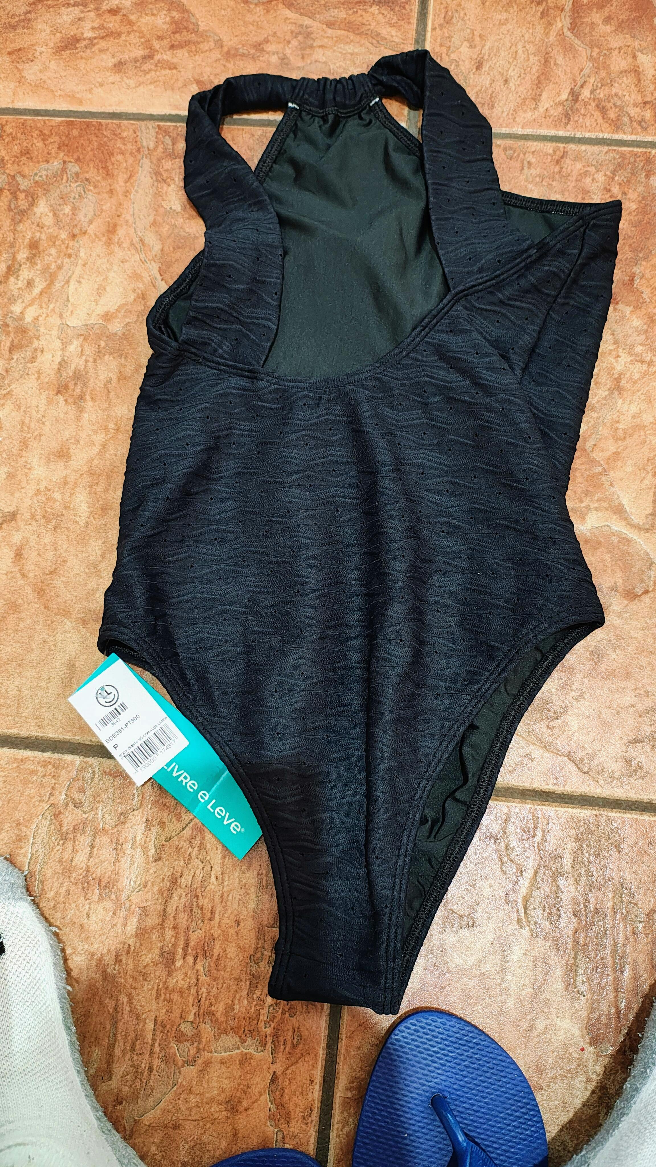 A modelo veste P, tem altura de 167 cm, busto de 89 cm, cintura de 65 cm e quadril de 92 cm.