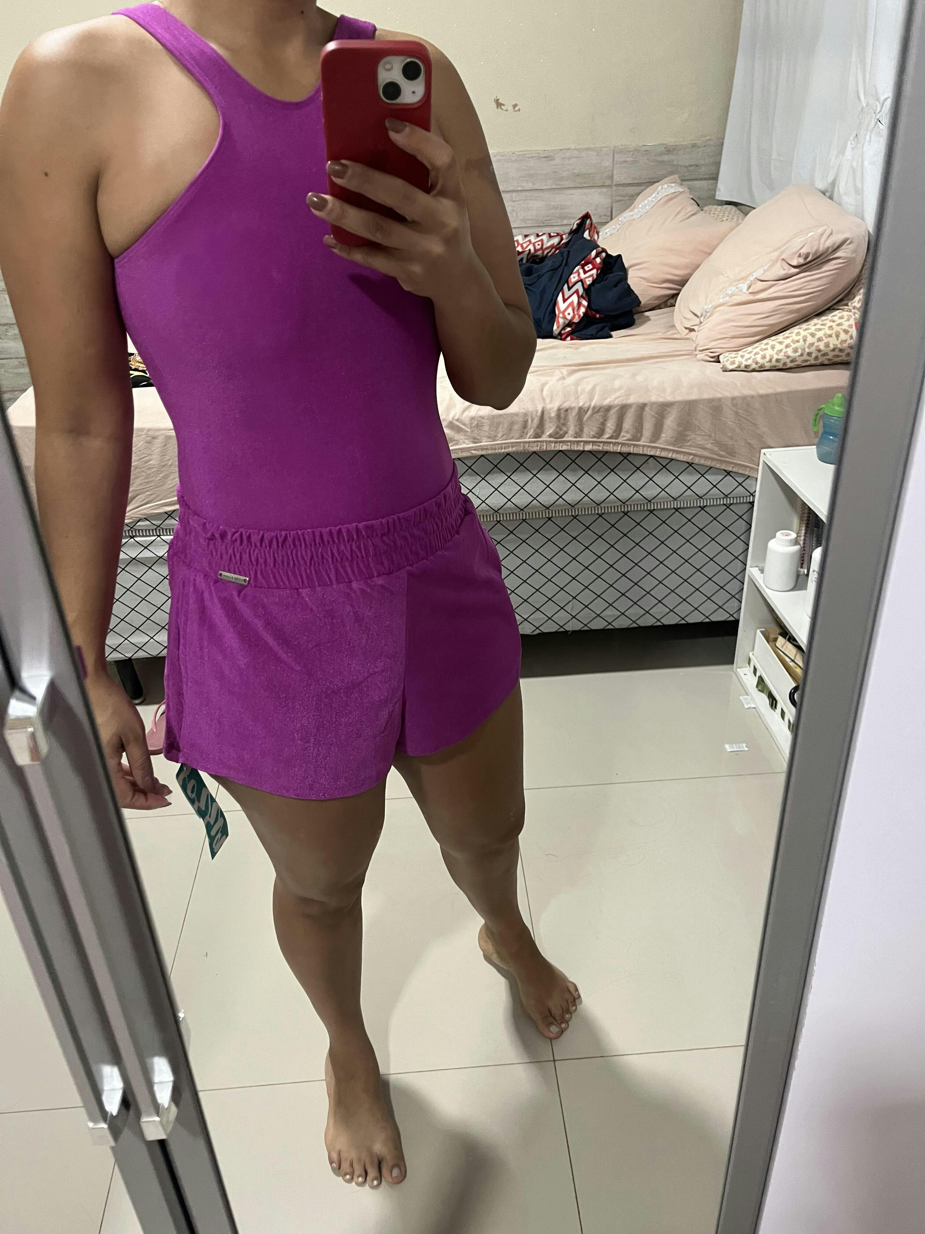 O Short perfeito pra completar os looks de praia. Ele é feito com tecido texturizado, de secagem rápida e toque macio que proporciona conforto térmico e frescor em contato com a pele. A modelagem é mais curtinha e com um detalhe arredondado que deixa o visual mais moderno. Ele tem elástico na cintura, e não é duplo.