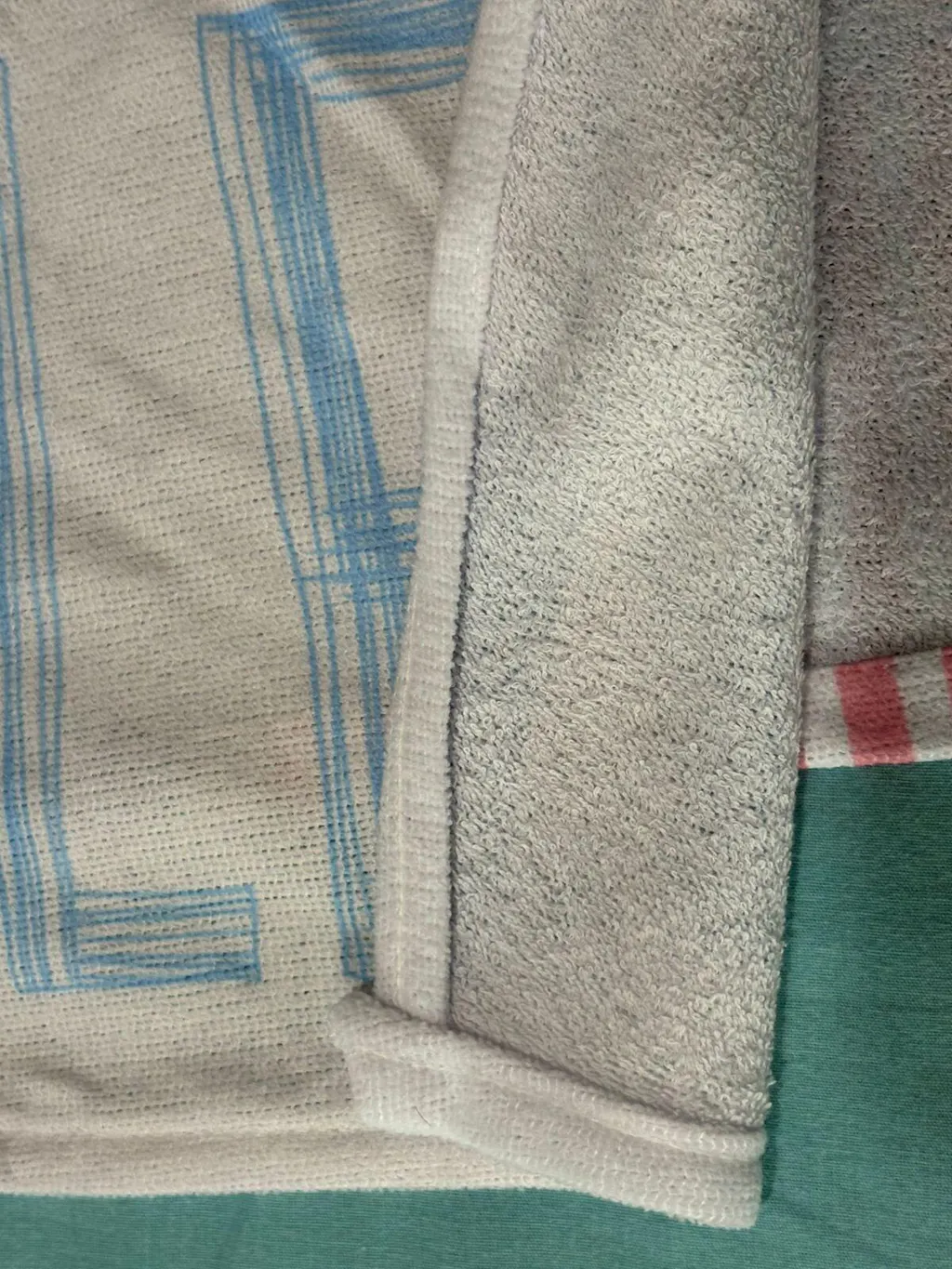 A modelo tem altura de 1,74 m, a toalha tem 0,70 cm de largura e 1,35 m de comprimento.