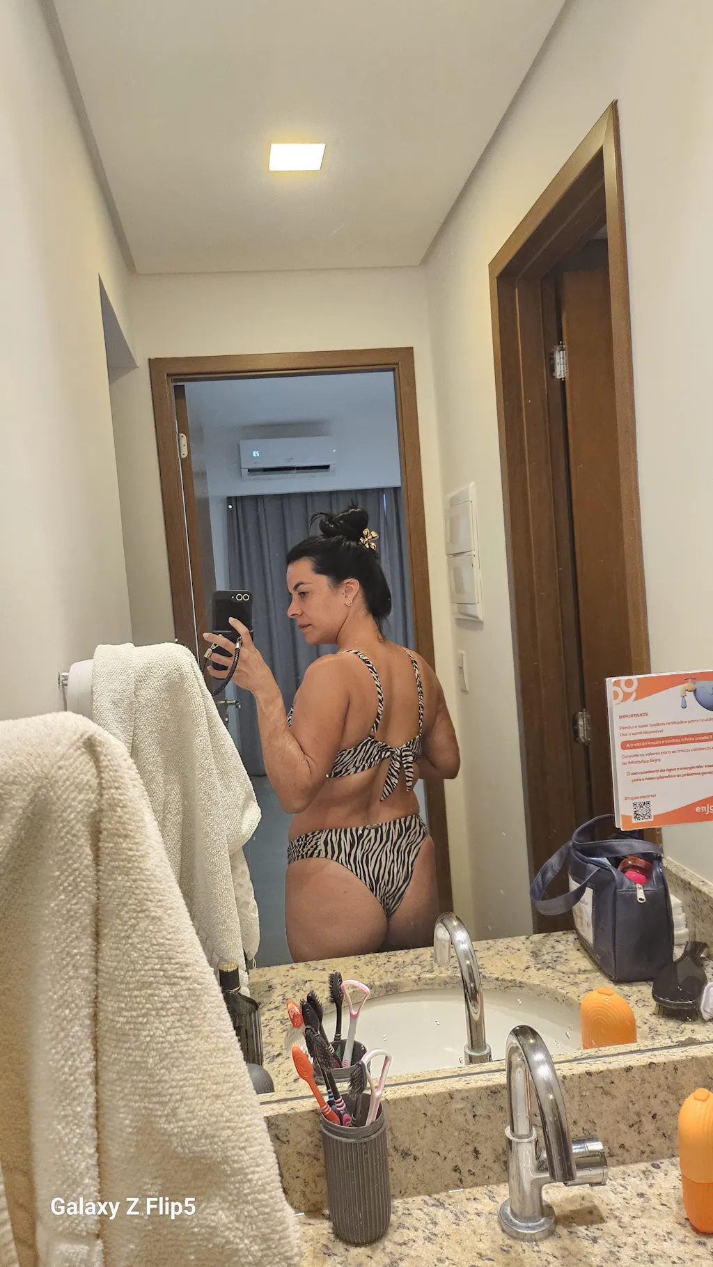 A modelo veste P, tem 167cm de altura, 89cm de busto, 65cm de cintura e 92cm de quadril.