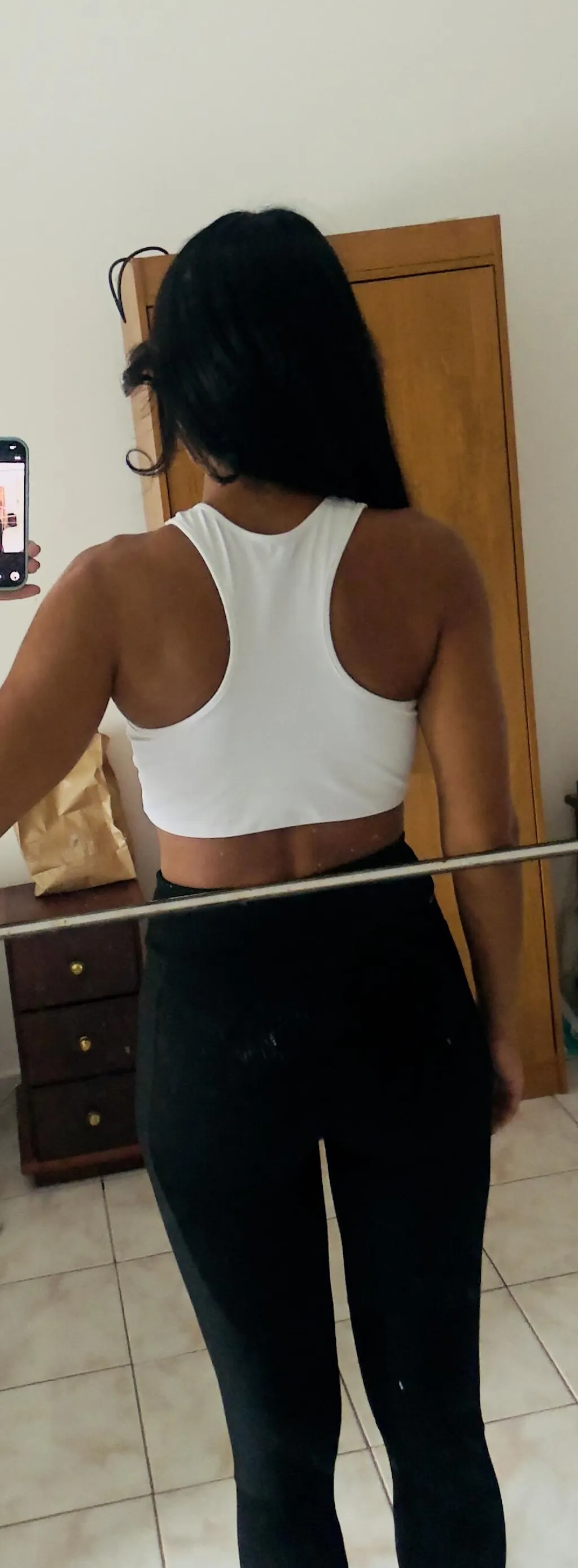 A modelo veste P, tem 167cm de altura, 89cm de busto, 65cm de cintura e 92cm de quadril.